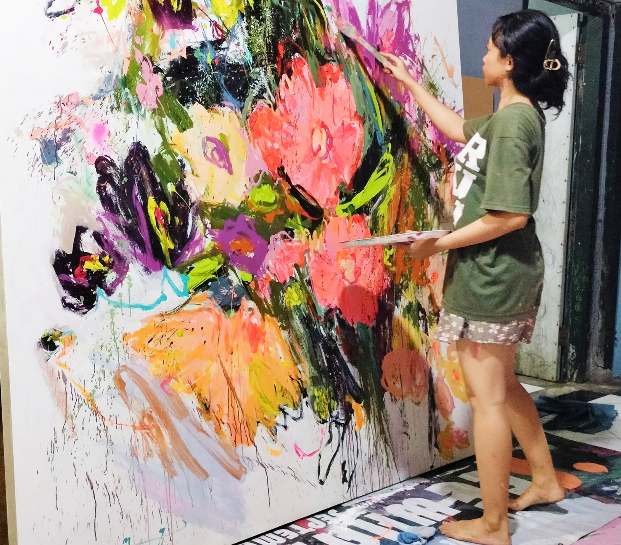 BORN IN 1993 IN BEKASI, WEST JAVA, RAMA RAMA IS A YOGYAKARTA-BASED ARTIST KNOWN FOR HER EVOCATIVE EXPLORATIONS OF RHYTHM, MOVEMENT, AND EMOTION. A GRADUATE OF THE INDONESIA INSTITUTE OF THE ARTS YOGYAKARTA, HER WORK SPANS PAINTING, INSTALLATION, AND MIXED MEDIA.