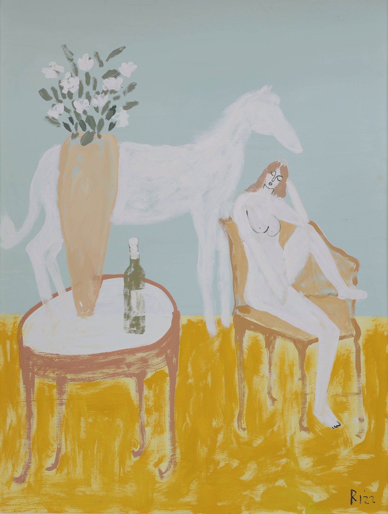 RIZRIZRIZZ IS A RENOWNED PAINTER, SCULPTOR, AND CERAMIST. HIS ARTWORKS HAVE BEEN EXHIBITED IN SEVERAL CITIES AROUND EUROPE AND INDONESIA, WITH UPCOMING EXHIBITIONS ACROSS THE USA. THE WORKS ON DISPLAY CONSIST OF SCULPTURES, PAINTINGS, AND CERAMICS. HIS FIGURATIVE PAINTINGS REFLECT HIS OWN MEMORIES, OFTEN EVOKING FEELINGS OF NOSTALGIA. THROUGH DEPICTIONS OF THE FEMALE FORM, ANIMALS, FLOWERS, AND VARIOUS OBJECTS IN SOFT COLORS AND ROUGH, WILD BRUSH STROKES, RIZZ’S WORK OFFERS AN INTIMATE LOOK INSIDE HIS FEELINGS AND LIFE EXPERIENCES—FULL OF DRAMA, TRAUMA, TRAGEDY, AND COMEDY, ALL WRAPPED INTO ONE SATIRICAL WORK.