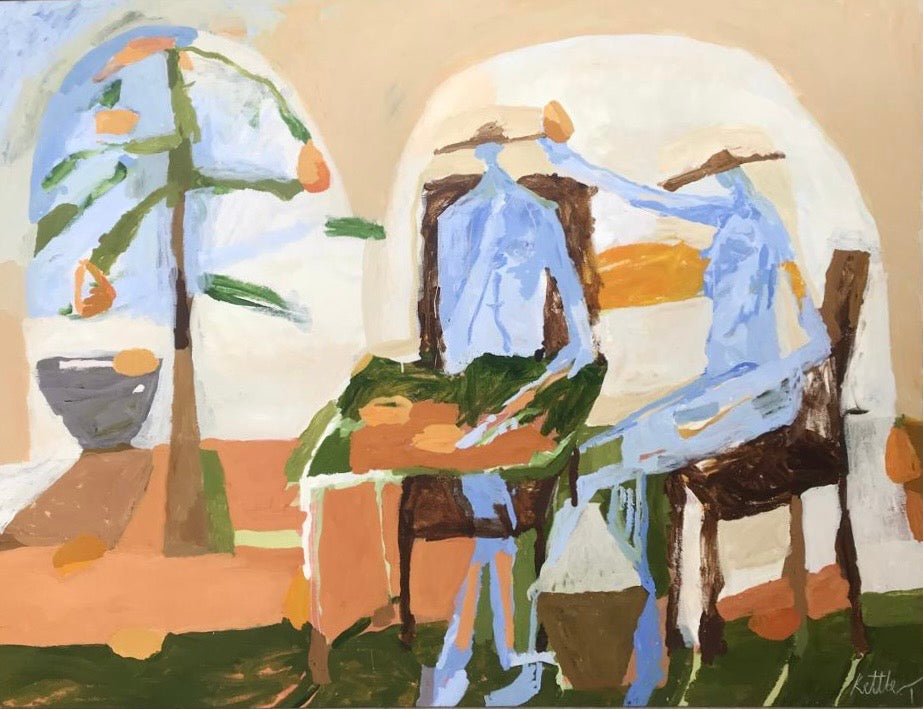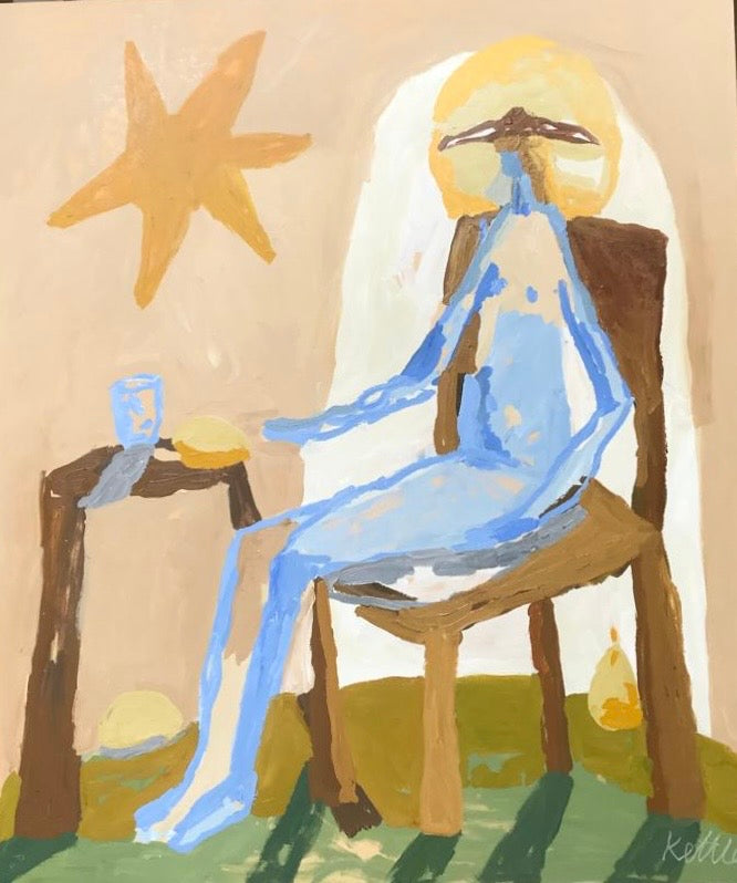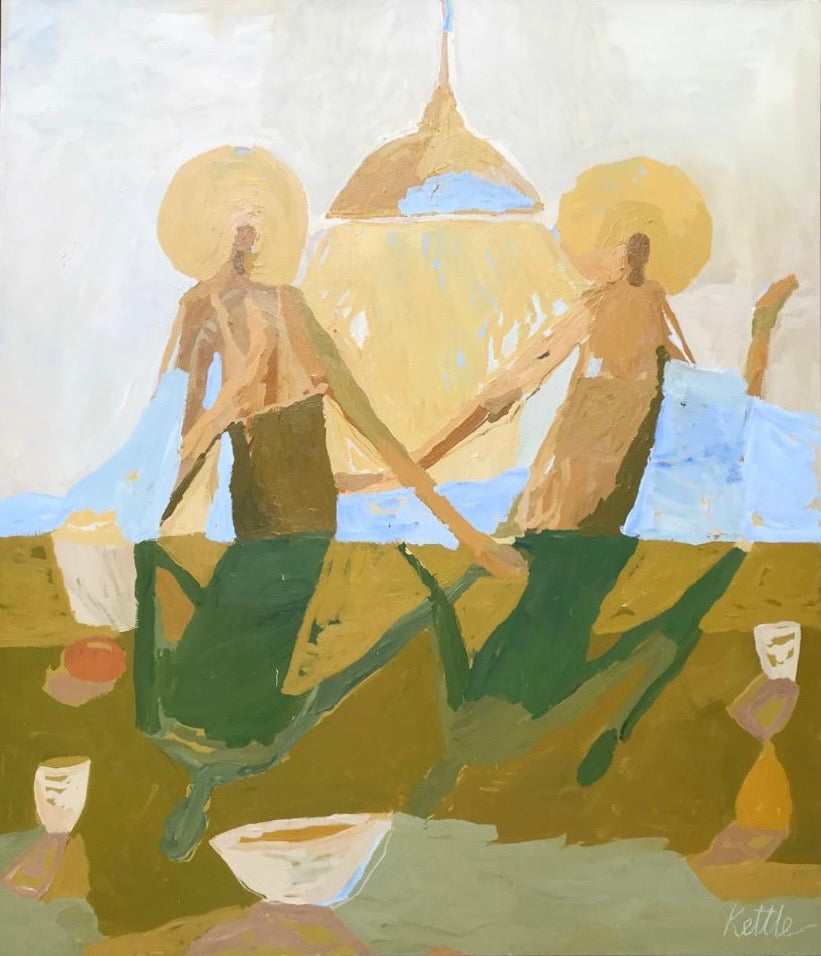 KETTLE'S ARCHETYPAL BEINGS BECOME AN AVENUE TO A VAST GARDEN OF MEANING, WHERE WE FIND A TOUCHING RESONANCE WITH OUR MOST INTIMATE SELVES. HER PAINTINGS FORM LIVING INVITATIONS TO A NEW WAY OF SEEING, WHERE MEMORIES ARE INTERWOVEN WITH A SENSE OF COLLECTIVE THOUGHT.