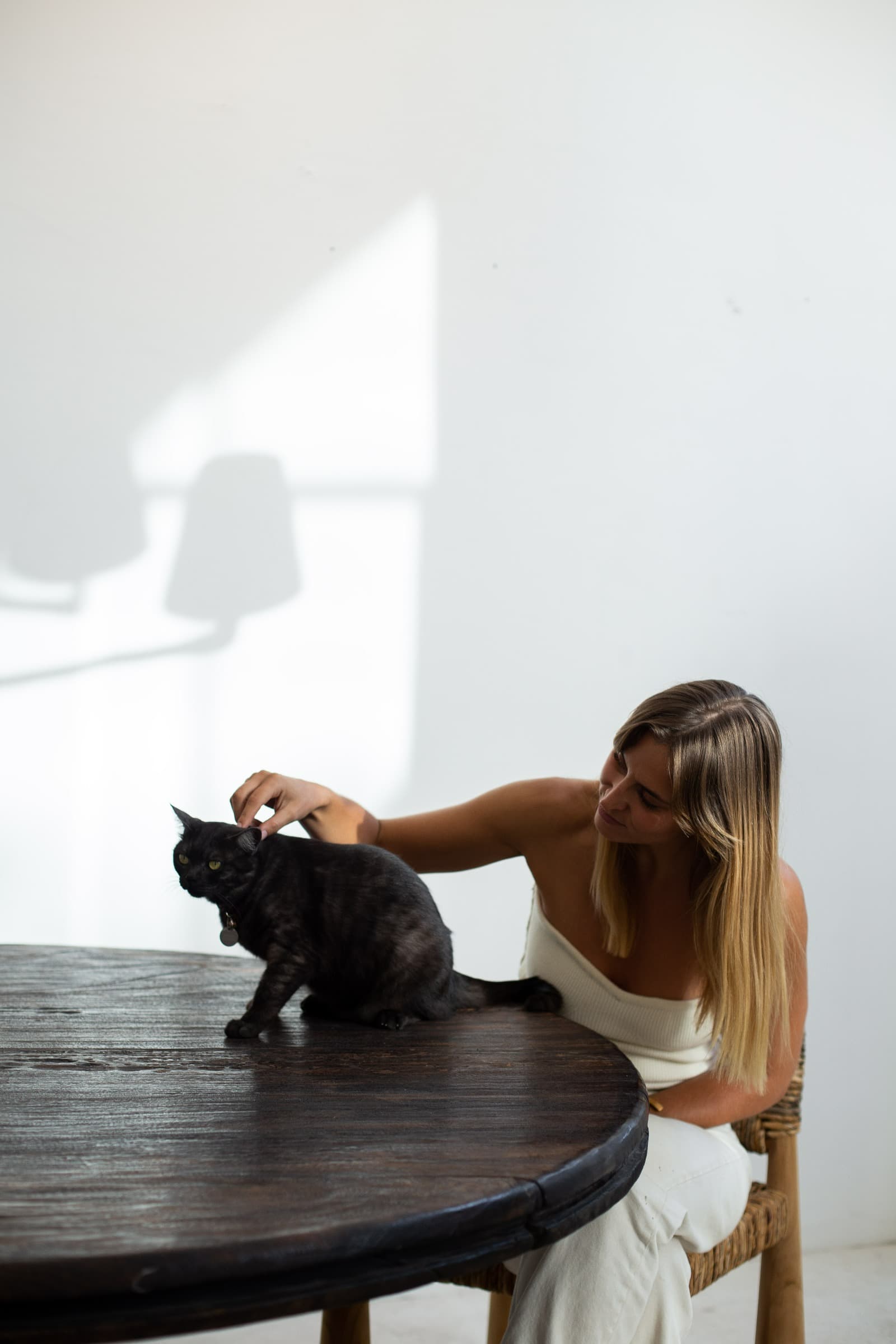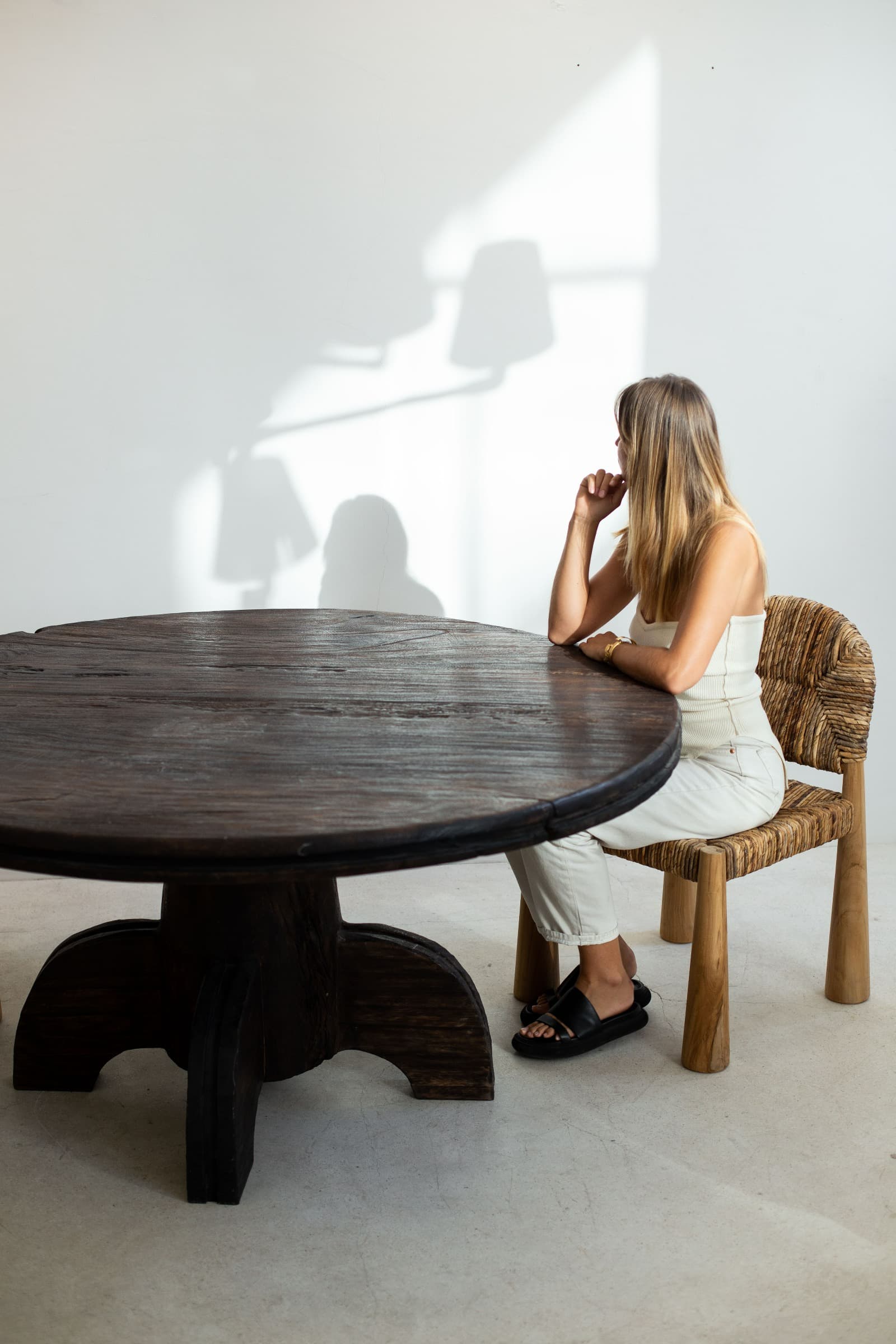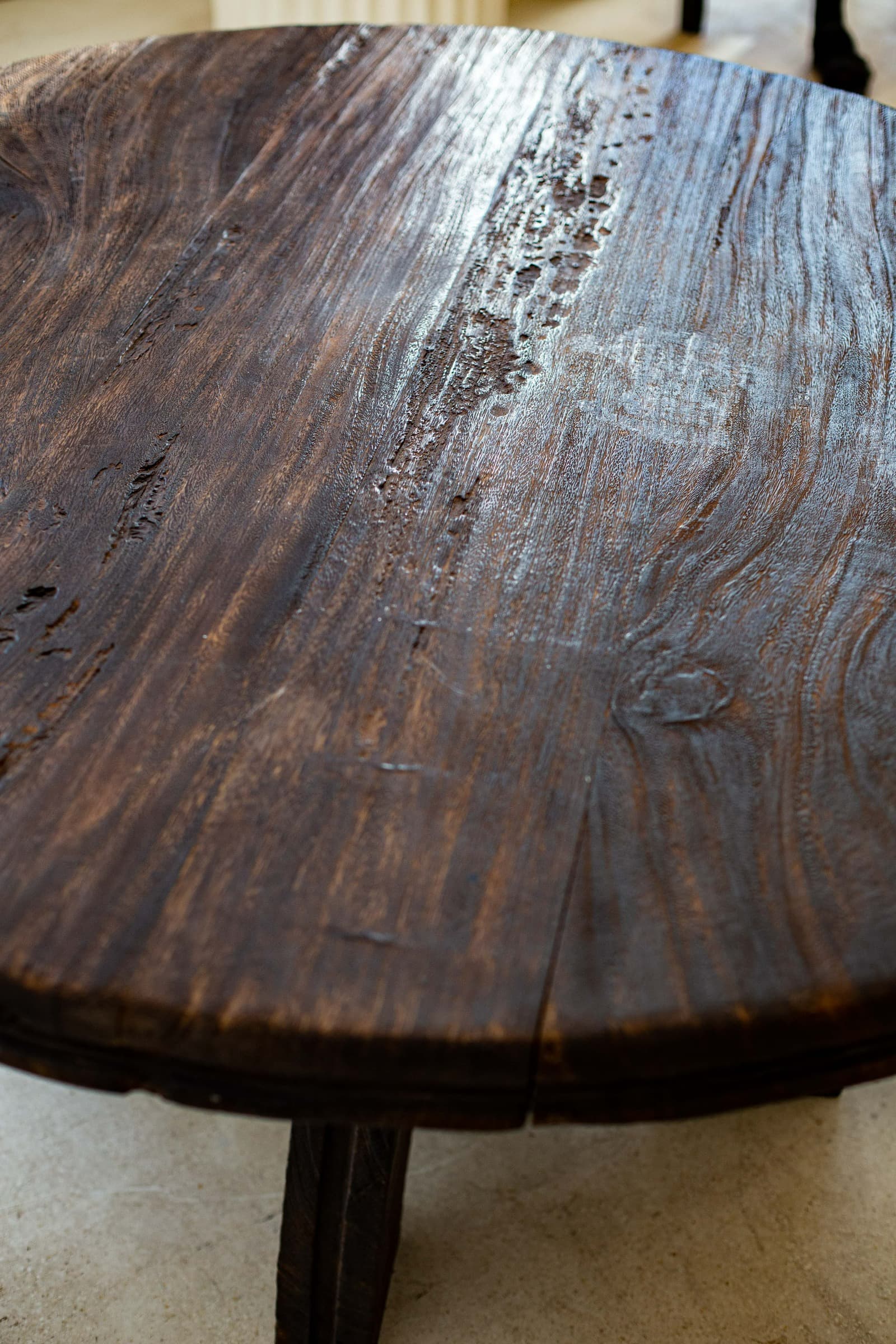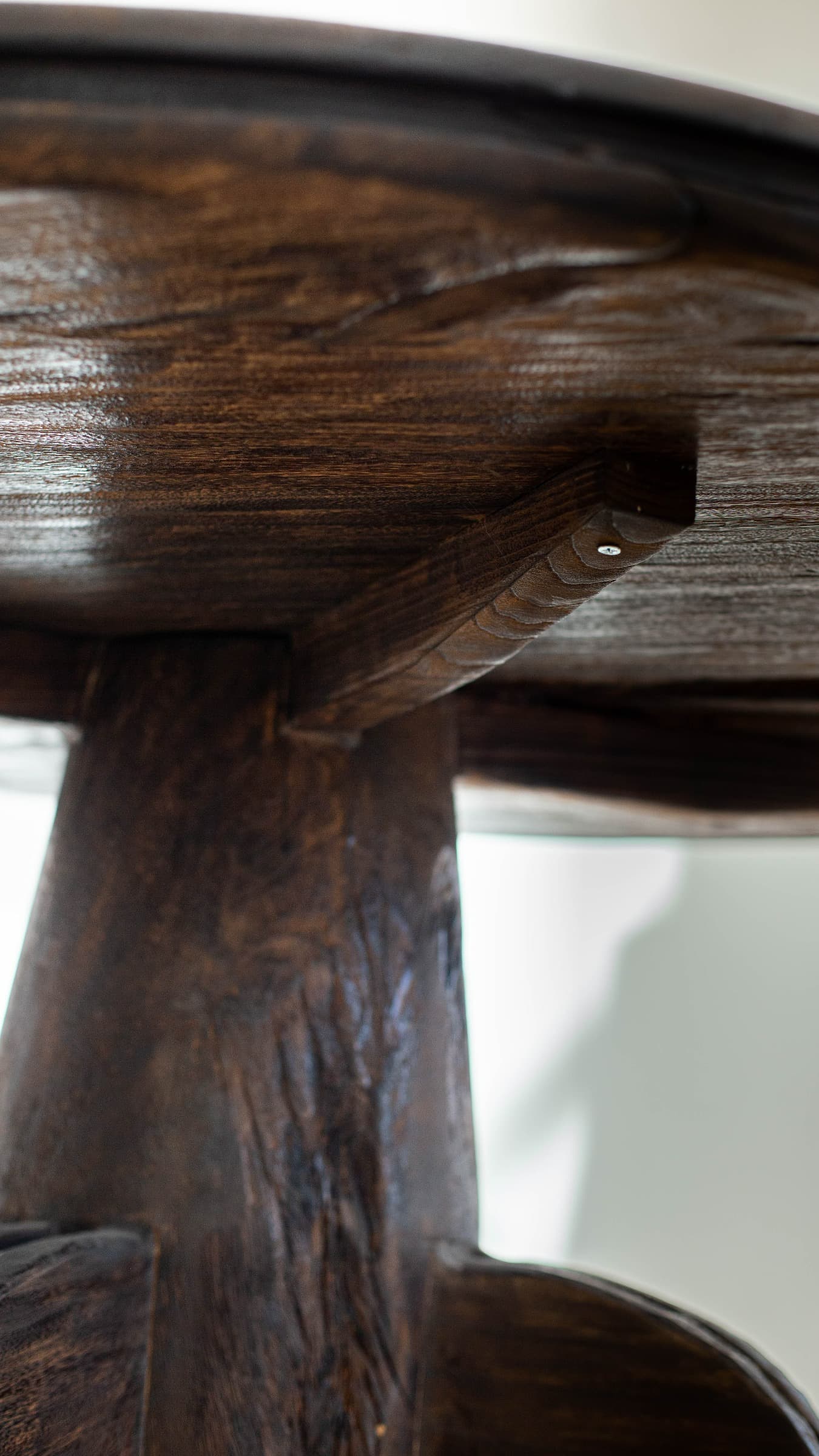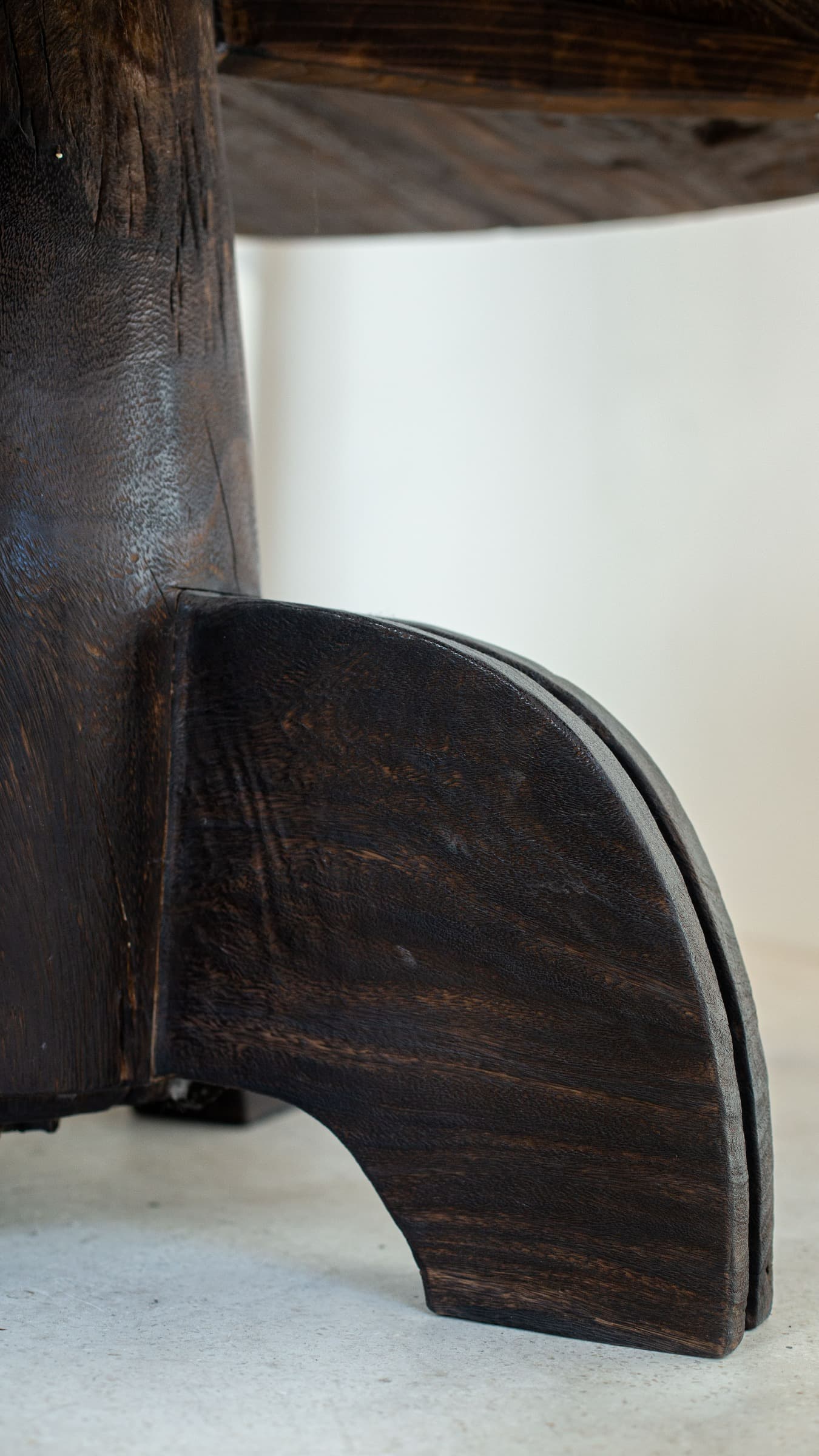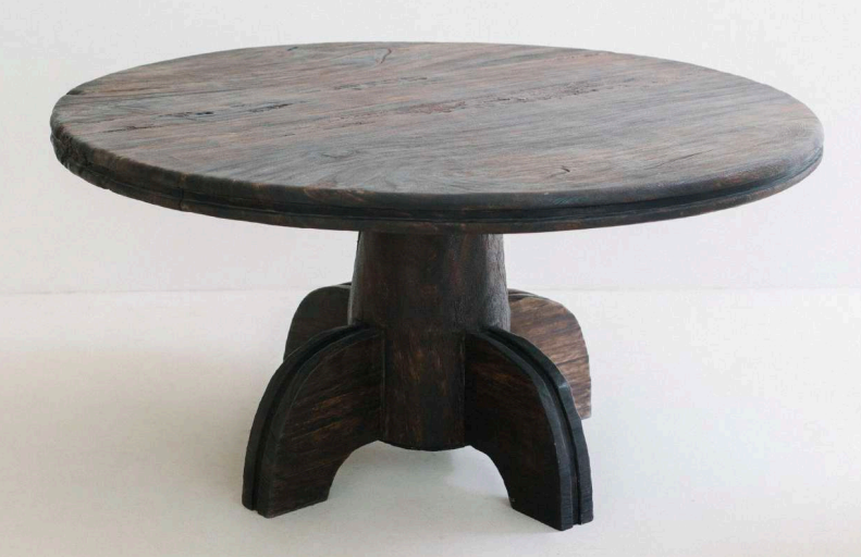 AGED CIRCULAR TOP ON PEDESTAL BASED TIMBER, CONSTRUCTION SHOU SUGI BAN FINISH