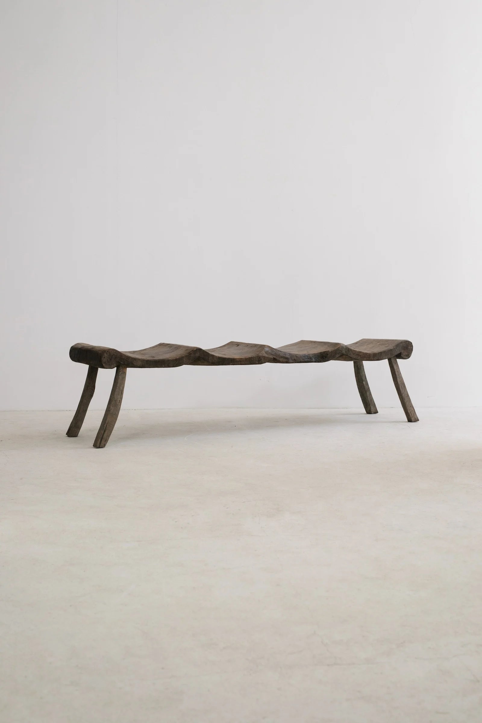 PRIMITIF BENCH TAPERED LEG CURVED SEAT