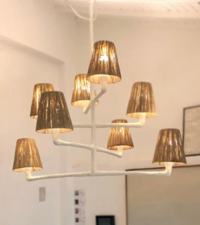 HAND CRAFTED PENDANT LIGHT RESIN CONSTRUCTION WITH POLYMER PLASTER FINISH WITH RAFFIA SHADE
